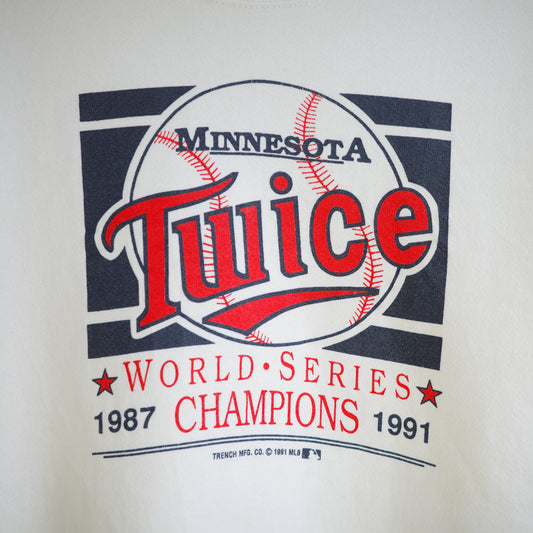 【used】MINNESOTA TWINS 1991 World Champions 裏起毛 crewneck sweat MLB FRUIT OF THE ROOM